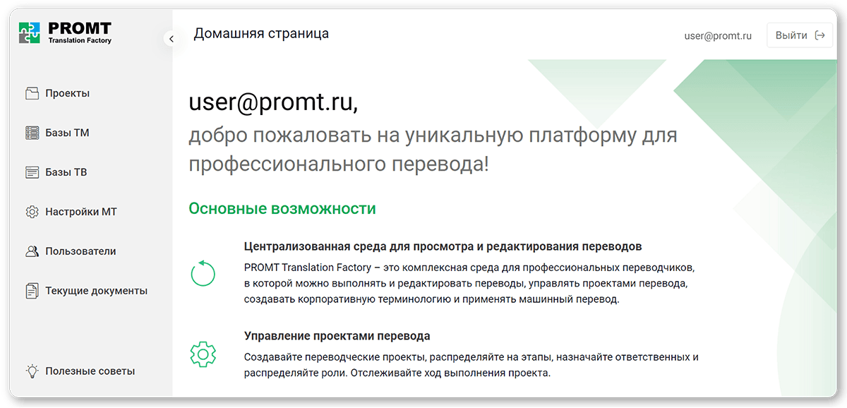 Функции «PROMT Translation Factory»
