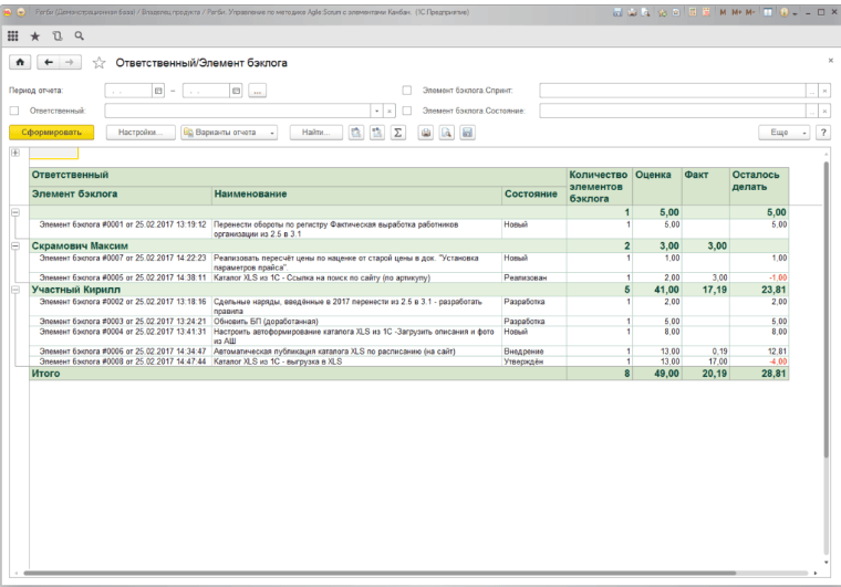«Регби» — это гибкая канбан-доска для ведения задач и работ по методике Agile:Scrum. Система учитывает и анализирует трудозатраты на проектные и сервисные услуги в различных сферах. Система разработана на платформе 1С:Предприятие 8.3.