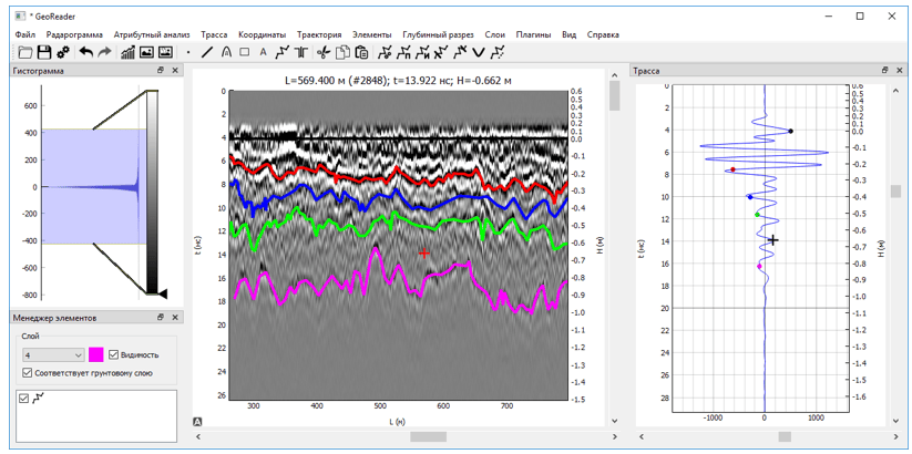 Программный комплекс GeoReader разработан для качественной и производительной обработки данных геофизического прибора неразрушающего контроля - ГЕОРАДАРА (GPR, или ground penetrating radar)