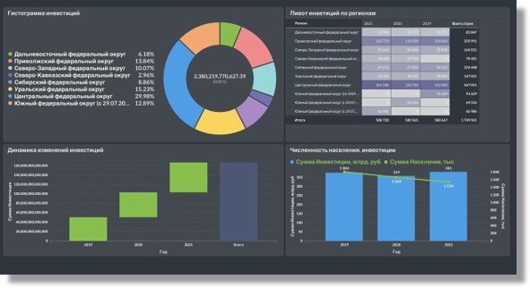 Glarus BI предлагает расширенные возможности визуализации данных, включая интеллектуальную загрузку Excel в качестве источника данных, сохранение дашбордов в форматах PPT, PDF и многое другое.