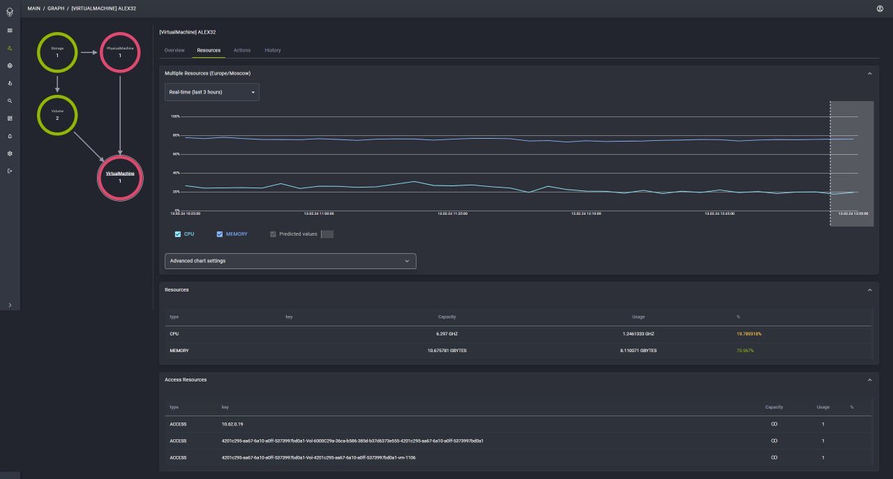 — Полуавтоматическая (с подтверждением оператора) балансировка ресурсов на уровне физических хостов, гипервизоров и оркестраторов.