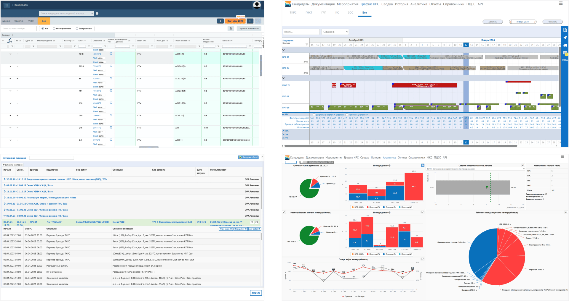Инструмент позволяет быстро найти информацию по истории ремонтов, посмотреть выполненные операции и статус скважины за определенный временной период.