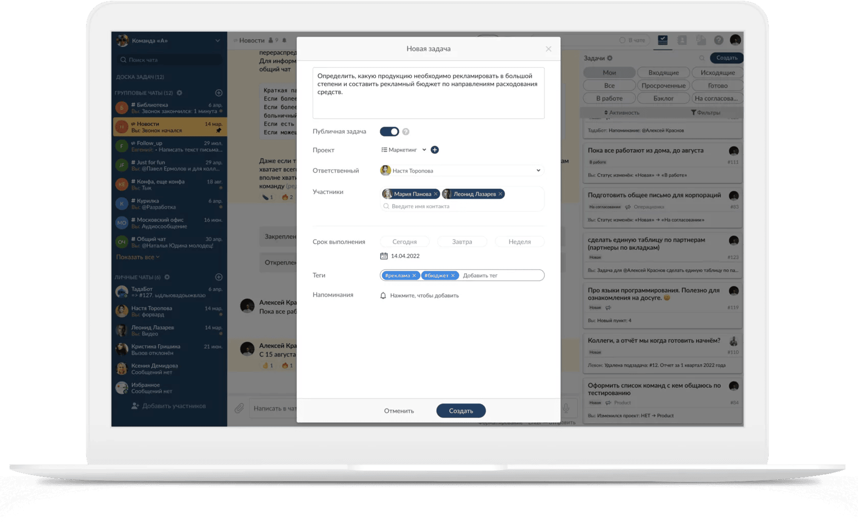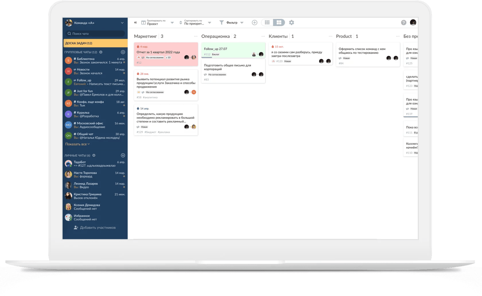 - Tada.team ускоряет коммуникацию, постановку задач, мониторинг результатов
