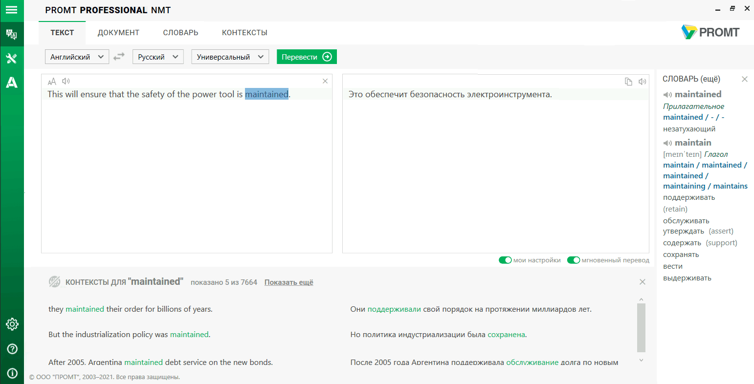 Описание «PROMT Professional Neural»