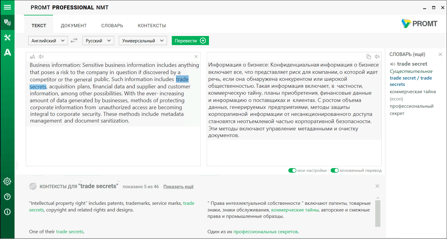 Скриншоты «PROMT Professional Neural»
