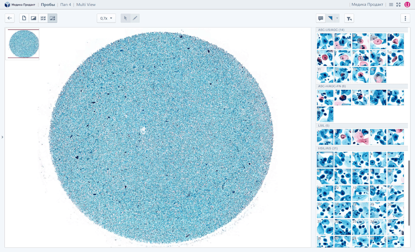 Сервис для работы с результатами цифровой микроскопии и телемедицинских консультаций. Он включает в себя доступ к облачной базе данных анализов Vision, телемедицинские консультации и удаленную связь с коллегами, централизованное управление и распределение потоков, аутсорсинг и архив.