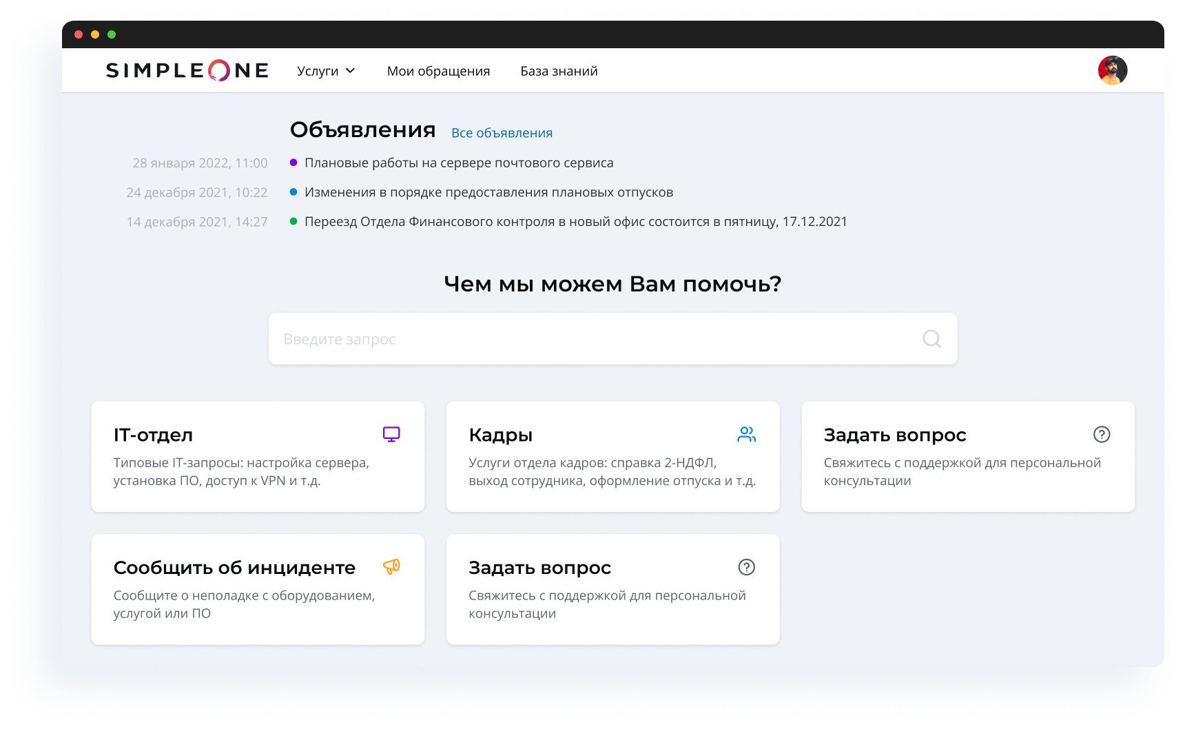 Решения SimpleOne ориентированы на корпоративных и государственных заказчиков, заинтересованных в повышении эффективности бизнес-процессов за счет внедрения сервисного подхода и стремящихся к цифровой трансформации бизнеса.