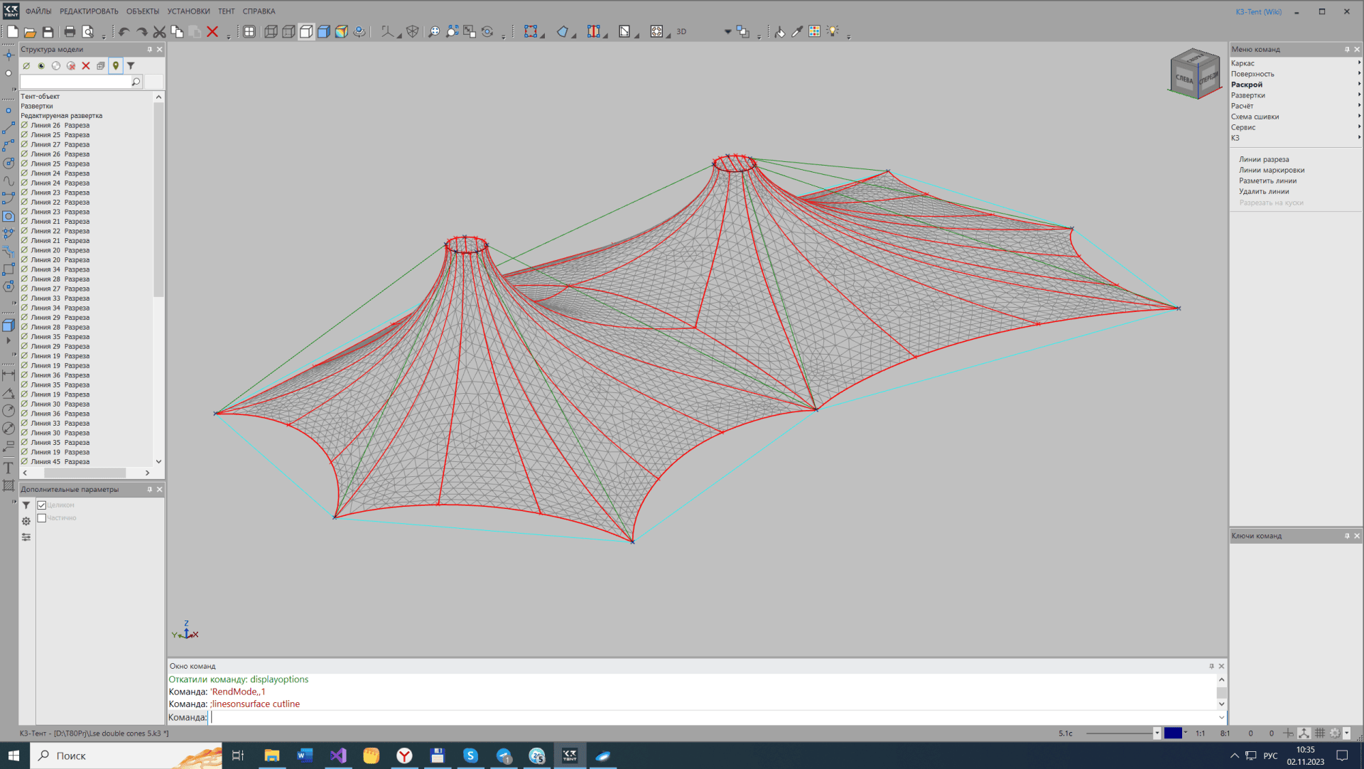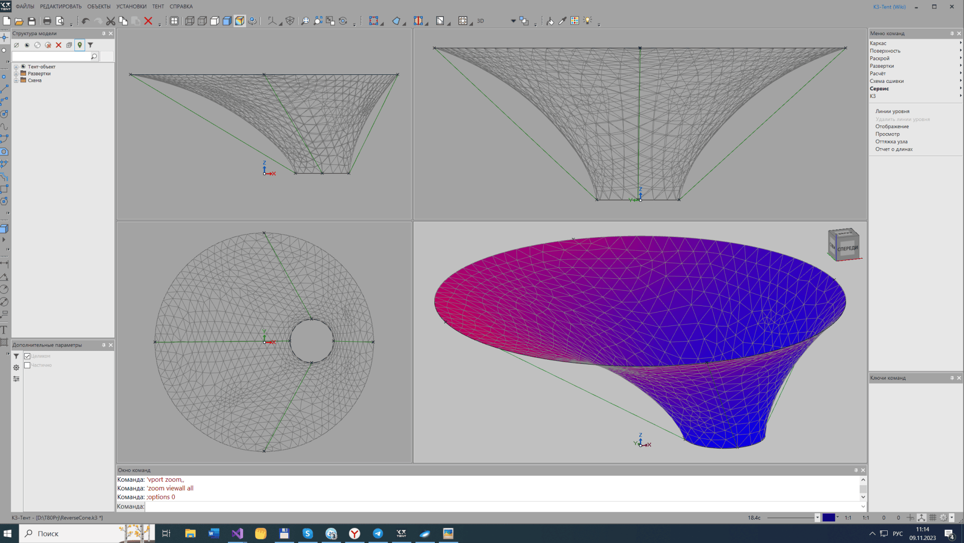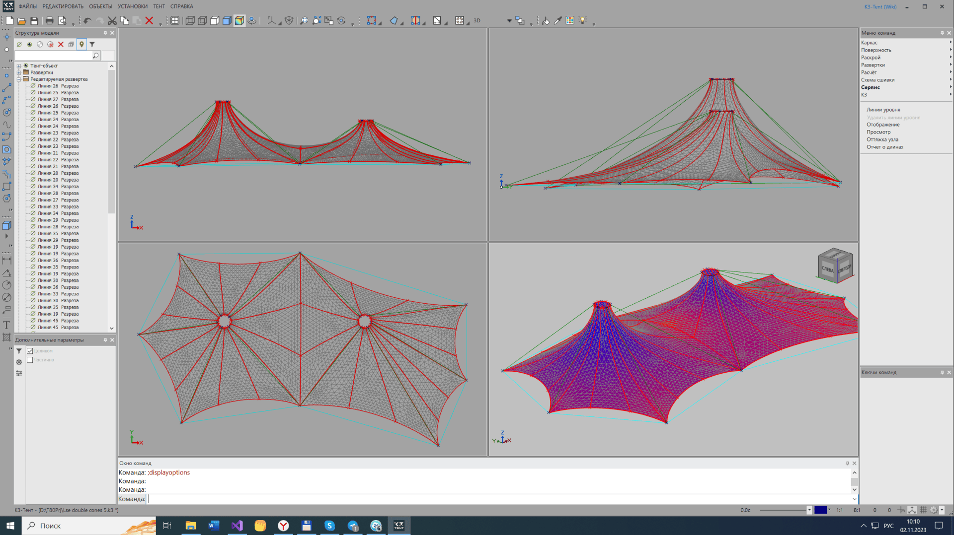 Скриншоты «Программный комплекс для проектирования мембранных тентовых конструкций «К3-Тент»»